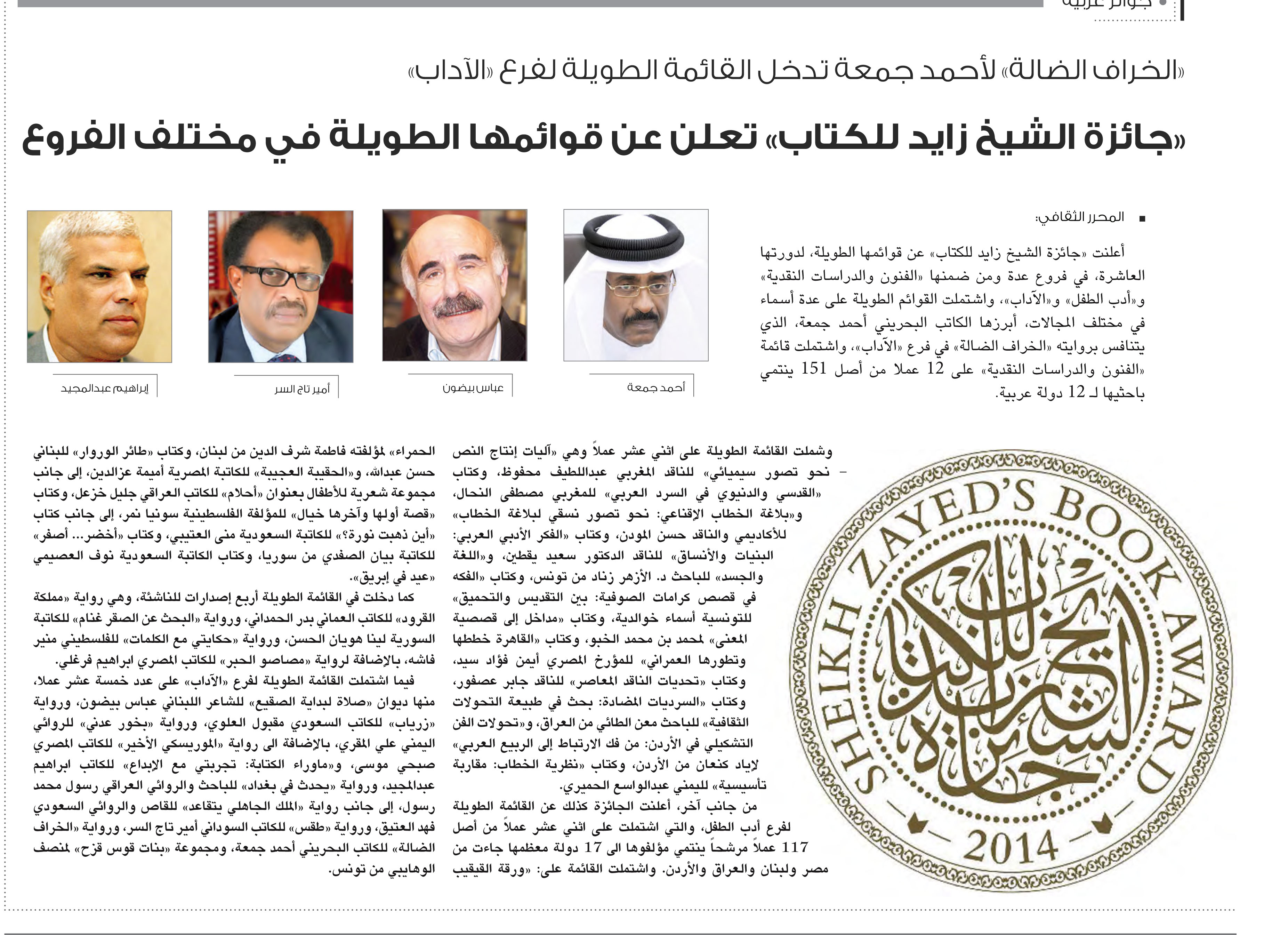 المصدر: الخراف الضالة رواية احمد جمعة في منافسة جائزة الشيخ زايد
